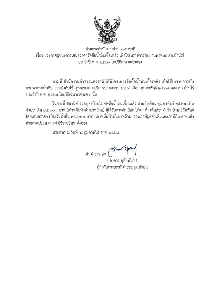 ประกาศจัดซื้อจัดจ้างประจำเดือนกุมภาพันธ์ 2567