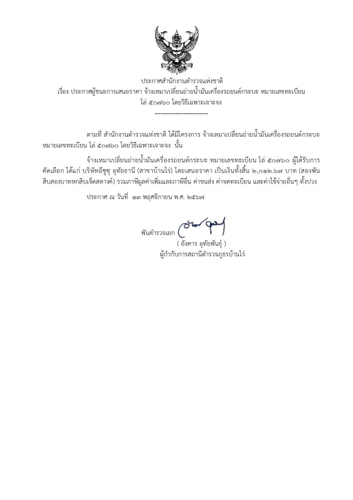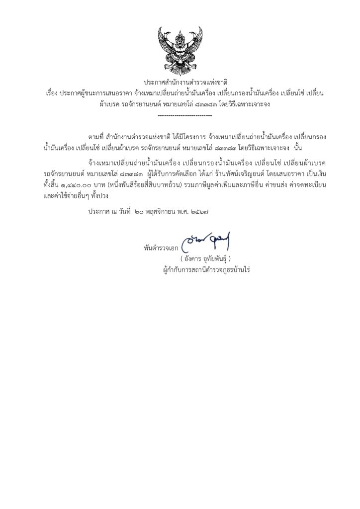 ประกาศจัดซื้อจัดจ้างประจำเดือนพฤศจิกายน 2567 30 พฤศจิกายน 2567 โดย admin / ข่าวจัดซื้อจัดจ้าง,ไม่มีหมวดหมู่ ประกาศผู้ชนะซื้อนำ้มันเชื้อเพลิง ประกาศผู้ชนะจ้างเหมาเปลี่ยนถ่ายน้ำมันเครื่องรถยนต์กระบะ หมายเลขทะเบียนโล่ 50760 ประกาศผู้ชนะจ้างเหมาเปลี่ยนถ่ายน้ำมันเครื่อง เปลี่ยนกรองน้ำมันเครื่อง เปลี่ยนโซ่ เปลี่ยนผ้าเบรค รถจักรยานยนต์ หมายเลขโล่ 83383 FacebookFacebookXXLINELine