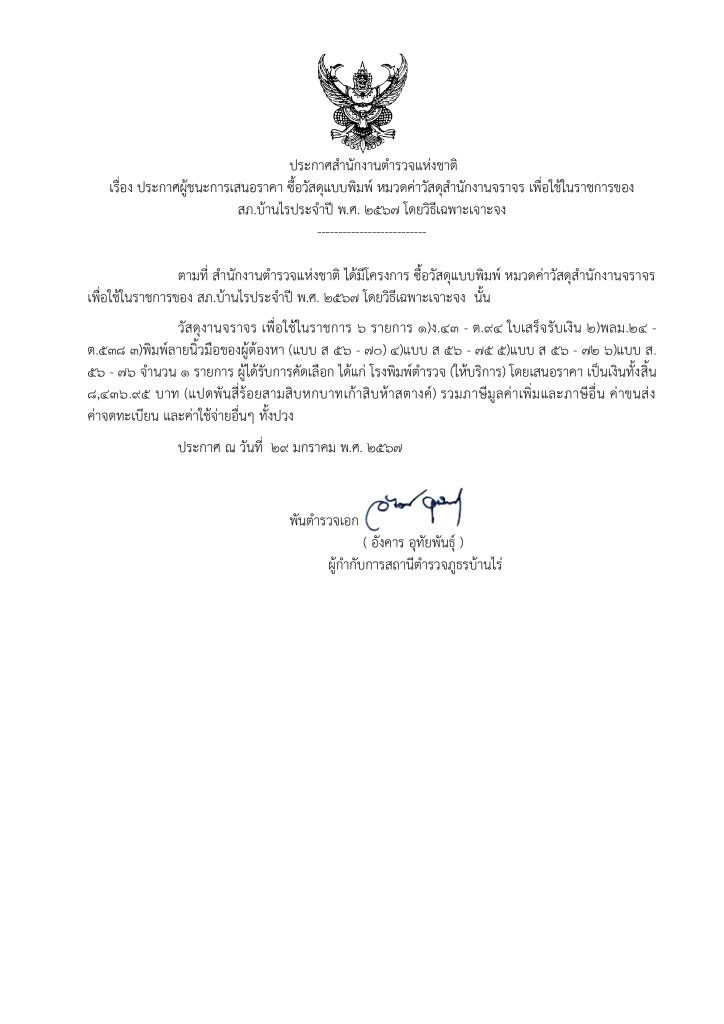 ประกาศจัดซื้อจัดจ้างประจำเดือนมกราคม 2567 25 มกราคม 2567 โดย admin / ข่าวจัดซื้อจัดจ้าง,ไม่มีหมวดหมู่ ประกาศผู้ชนะ ซื้อน้ำมันเชื้อเพลิง ประจำเดือนมกราคม 2567 ประกาศผู้ชนะ ซื้อวัสดุแบบพิมพ์ หมวดค่าวัสดุสำนักงานจราจร ประจำเดือน มกราคม 2567 FacebookFacebookXXLINELine