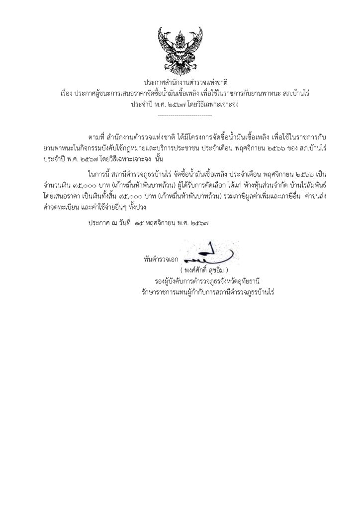 ประกาศจัดซื้อจัดจ้าง ประจำเดือนพฤศจิกายน 2566