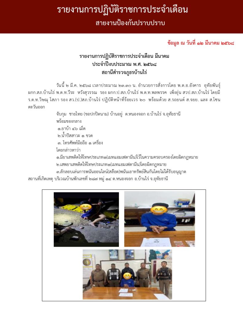 ผลการปฏิบัติราชการสายงานป้องกันปราบปราม 12 มีนาคม 2568 โดย admin / ไม่มีหมวดหมู่ FacebookFacebookXXLINELine