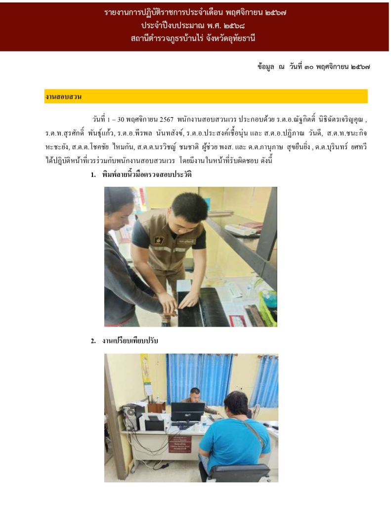 ผลการปฏิบัติราชการสายงานสอบสวน 30 พฤศจิกายน 2567 โดย admin / ไม่มีหมวดหมู่ FacebookFacebookXXLINELine
