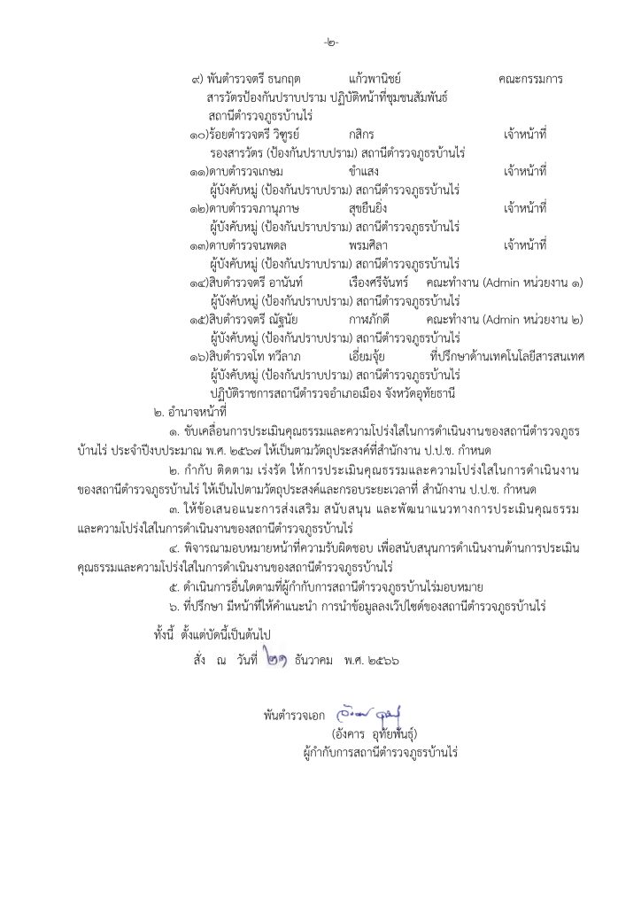 เมื่อวันที่ 27 มีนาคม 2567 พ.ต.อ.อังคาร อุทัยพันธ์ ผกก.สภ.บ้านไร่ จังหวัดอุทัยธานี พร้อมด้วยคณะทำงานขับเคลื่อนการประเมินคุณธรรมและความโปร่งใสภาครัฐ ประจำปี พ.ศ.2567 เพื่อกำกับดูแลในการจัดทำข้อมูลเพื่อนำลงในเว๊ปไซด์ สภ.บ้านไร่