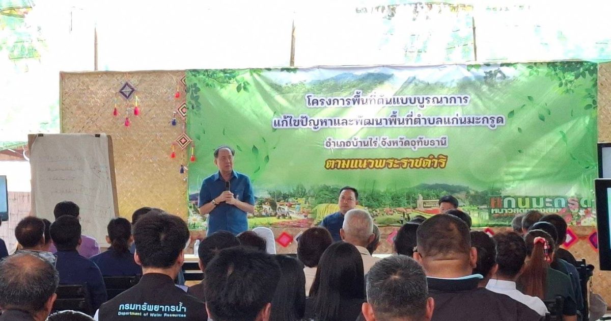 ซึ่ง โดยมีนายกฤษฎา บุญราช ประธานกรรมการสถาบันส่งเสริมและพัฒนากิจกรรมปิดทองหลังพระ สืบสานแนวพระราชดำริ นายอุมาศ มาศทอง ปลัดองค์การบริหารส่วนตำบลบ้านไร่ หัวหน้าส่วนราชการต่างๆ และหน่วยงานที่เกี่ยวข้องร่วมเข้าประชุม ณ สภาตำบลแก่นมะกรูด อำเภอบ้านไร่ จังหวัดอุทัยธานี