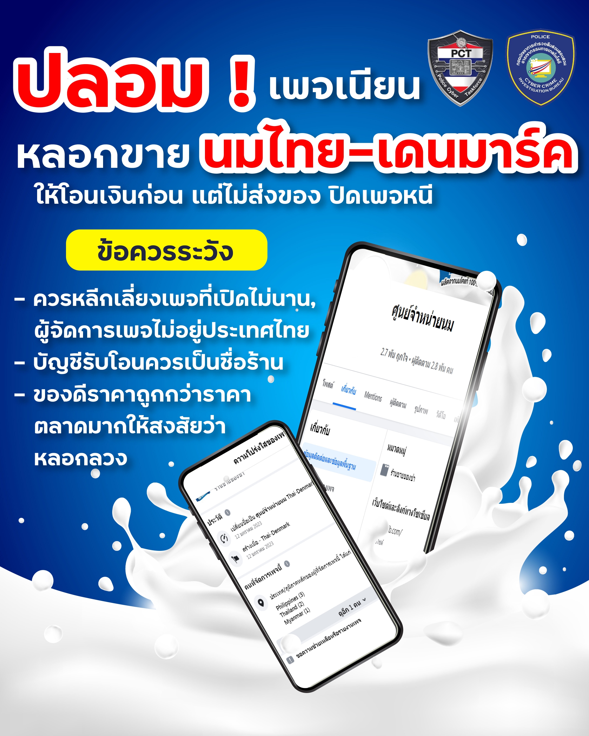เตือนภัย! เพจปลอมหลอกขายนม ไทย – เดนมาร์ค