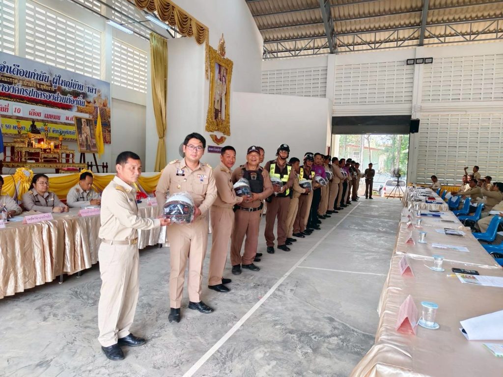 10 เมษายน 2568 โดย admin / ข่าวประชาสัมพันธ์,ข่าวกิจกรรม,ข่าวประชาสัมพันธ์ วันนี้ (10 เม.ย.68) เวลา 09.00 น. พ.ต.อ.อังคาร อุทัยพันธุ์ ผกก.สภ.บ้านไร่ พ.ต.ท.วีระ หวังสุวรรณ รอง ผกก.ป.สภ.บ้านไร่ (บร.1,บร.2 ภารกิจประชุมศาลากลาง)มอบหมายให้ พ.ต.ท.พลพรรค เพ็งอุ่น สวป.สภ.บ้านไร่ พร้อมด้วย Local CAT และสายตรวจของสภ.บ้านไร่ ร่วมรณรงค์ประชาสัมพันธ์ในวันประชุมกำนัน ผู้ใหญ่บ้านในการป้องกันและลดอุบัติเหตุทางถนนในช่วงเทศกาลสงกรานต์ โดยมีนายสิรภพ นิยมเดช นายอำเภอบ้านไร่ เป็นประธาน พร้อมทั้งได้มอบหมวกนิรภัยให้กับกำนัน 13 ตำบล จำนวน 13 ใบ เพื่อไปมอบให้กับผู้สูงอายุที่มักจะขับขี่แล้วเกิดอุบัติเหตุอยู่บ่อยครั้ง FacebookFacebookXXLINELine