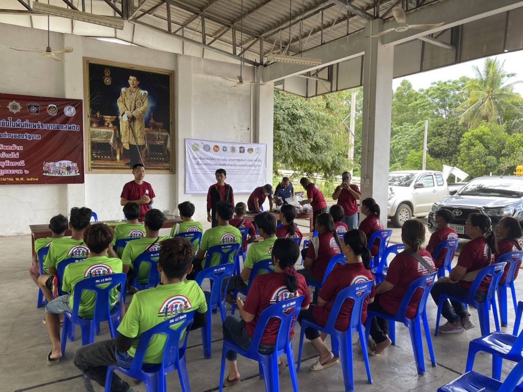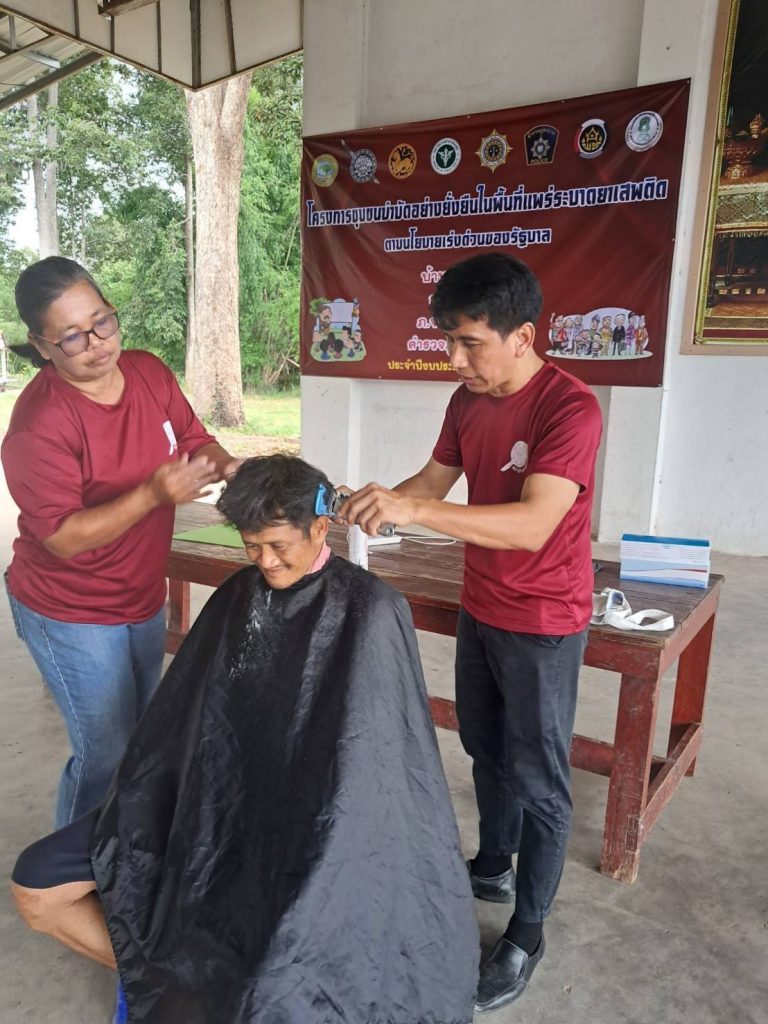 28 มิถุนายน 2567 โดย admin / ประชาสัมพันธ์เชิงบวก วันนี้ 28 มิ.ย. 2567 เวลา 13.30 น. ชุดปฏิบัติการชุมชนบำบัดอย่างยั่งยืนฯ นำโดย พ.ต.ต.ธนกฤต แก้วพานิชย์ สวป.(ชส.)สภ.บ้านไร่ พร้อมชุดปฏิบัติการชุมชนบำบัดอย่างยั่งยืนฯ รพ.สต.ทัพหลวง ผู้ใหญ่บ้าน ,ผู้ช่วยผู้ใหญ่บ้าน ม.2 อสม.ได้แจ้งให้ผู้เสพจำนวน 20 รายมาทำการตรวจประเมินผล โดย ผอ.รพ.สต.ทัพหลวง ได้ตัดผมให้ผู้เข้ารับการบำบัด 1 คน พร้อมทั้งได้พูดคุยถึงวิธีการบำบัดในแต่ละขั้นตอน และนัดหมายในคราวต่อไปในวันที่ 4 ก.ค.67 เวลา 09.30 น.โดยจะมีกิจกรรมศาสนบำบัด โดยนิมนต์พระเทศนา ธรรมมะแก่ผู้บำบัด-โดยมีผู้ขาดการประเมินจำนวน 4 ราย คือนายธิติ หงษ์คำนายพรเทพ วงศ์ศรีทานายกฤษณะ จันทรนายวิชัย ทะนงแผลง FacebookFacebookXXLINELine