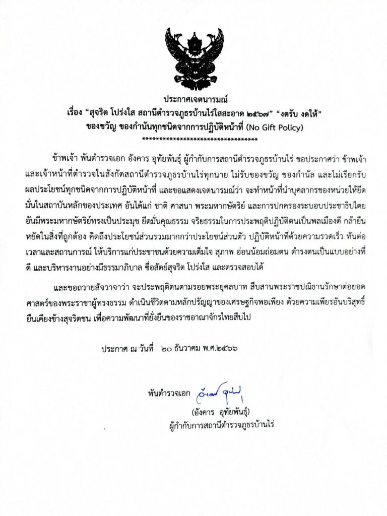 การประชาสัมพันธ์ข้อมูลการดำเนินงานของสถานีตำรวจภูธรบ้านไร่