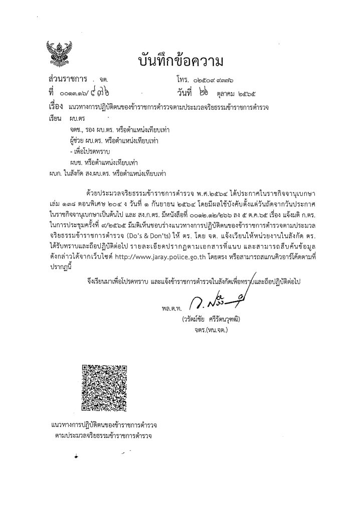 แนวทางการปฏิบัติตนของข้าราชการตำรวจตามแนวประมวลจริยธรรมข้าราชการตำรวจ ฉบับย่อ