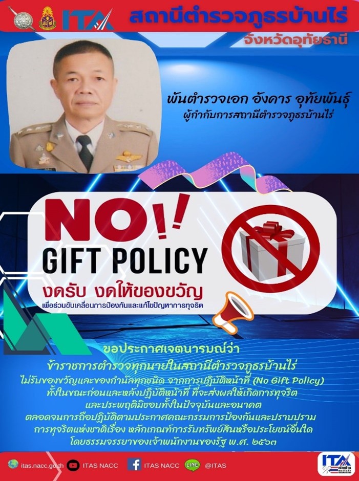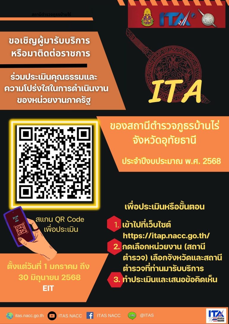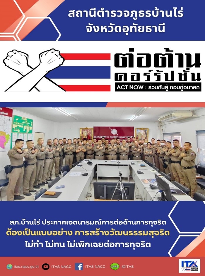 ในส่วนของสถานีตำรวจภูธรบ้านไร่ มี พ.ต.อ.อังคาร  อุทัยพันธุ์  ผกก.สภ.บ้านไร่ จังหวัดอุทัยธานี พร้อมคณะทำงาน สภ.ฯ เข้าร่วมรับฟังกิจกรรมชี้แจงการประเมินคุณธรรมและความโปร่งใสในการดำเนินงานของหน่วยงานภาครัฐ (ITA) ของสถานีตำรวจ ปี ๒๕๖๘