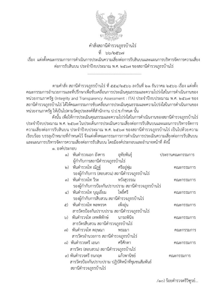 O20 : การประเมินความเสี่ยงต่อการรับสินบน ITA 2567