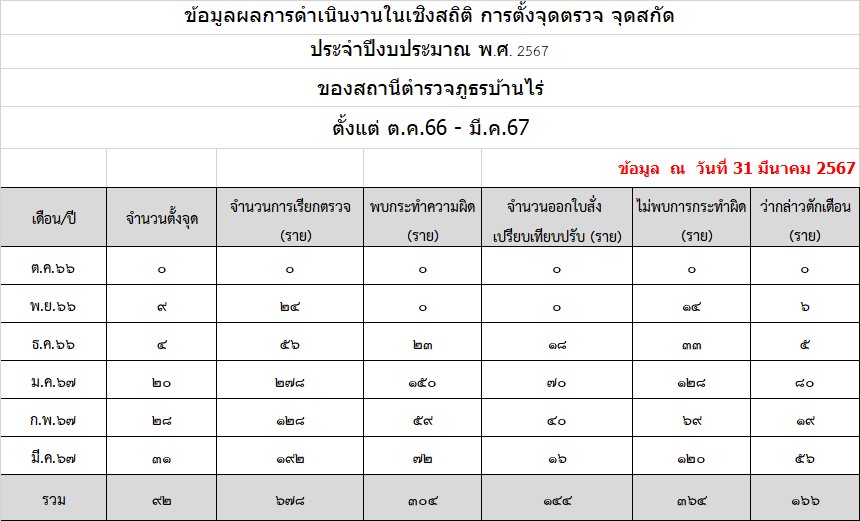 ข้อมูล ณ วันที่ 31 มีนาคม 2567